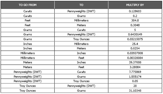 Conversion Grid to Estimate an Item Weight in Different Metals