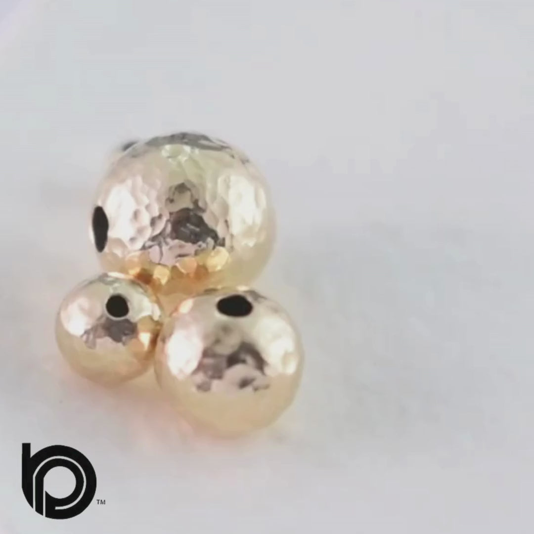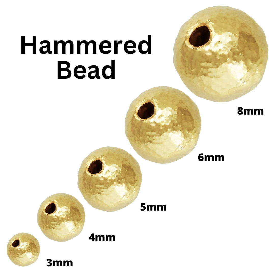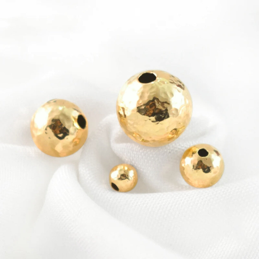 14K Gold Filled Hammered Textured Round Beads, Seamless Shiny Beads Available in 3mm, 4mm, 5mm, 6mm, 8mm, Wholesale Findings (GF-550H)